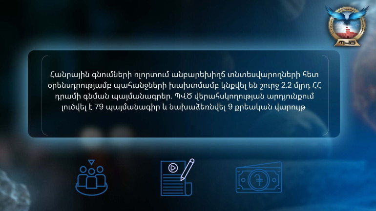 Հանրային գնումների ոլորտում օրենսդրությամբ պահանջների խախտմամբ կնքվել են շուրջ 2.2 մլրդ ՀՀ դրամի գնման պայմանագրեր. ՊՎԾ վերահսկողության արդյունքում լուծվել է 79 պայմանագիր և նախաձեռնվել 9 քրեական վարույթ
