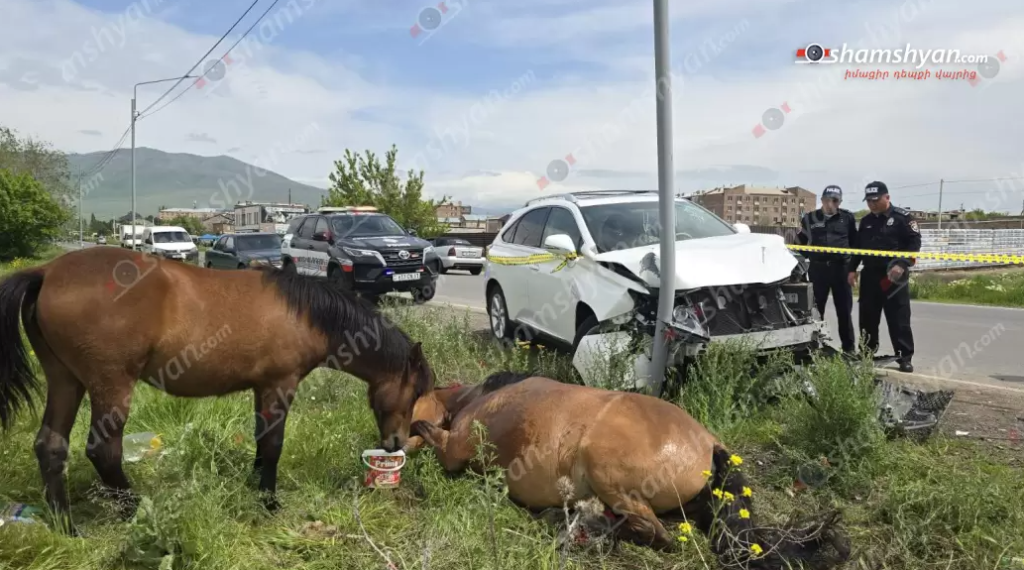 Եղվարդում «Lexus»-ը բախվել է ճանապարհին հայտնված ձիnւն, ապա երկաթե էլեկտրասյանը