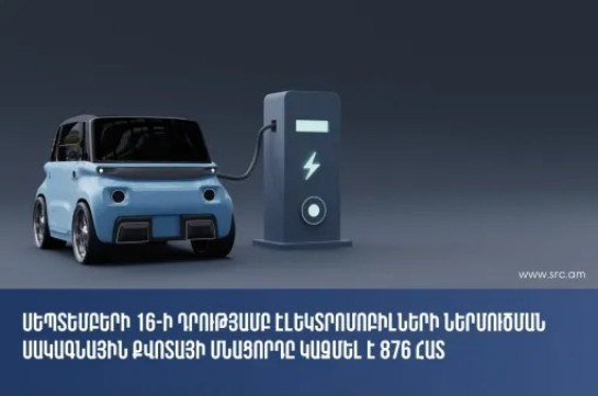 Սեպտեմբերի 16-ի դրությամբ էլեկտրոմոբիլների ներմուծման սակագնային քվոտայի մնացորդը կազմում է 876 հատ
