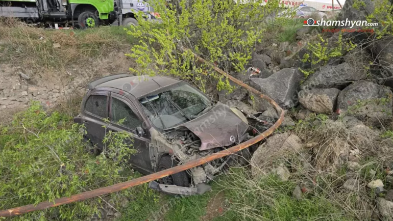 Երևանում «Nissan March»-ը կոտրել է գազատար խողովակն ու հայտնվել ձորակում