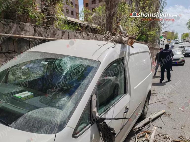 Երևանում չորացած ծառը կոտրվել և ընկել է կայանված «Volkswagen»-ի վրա