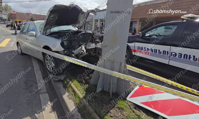 Աբովյանում «Mercedes»-ը բախվել է երկաթե սյանը